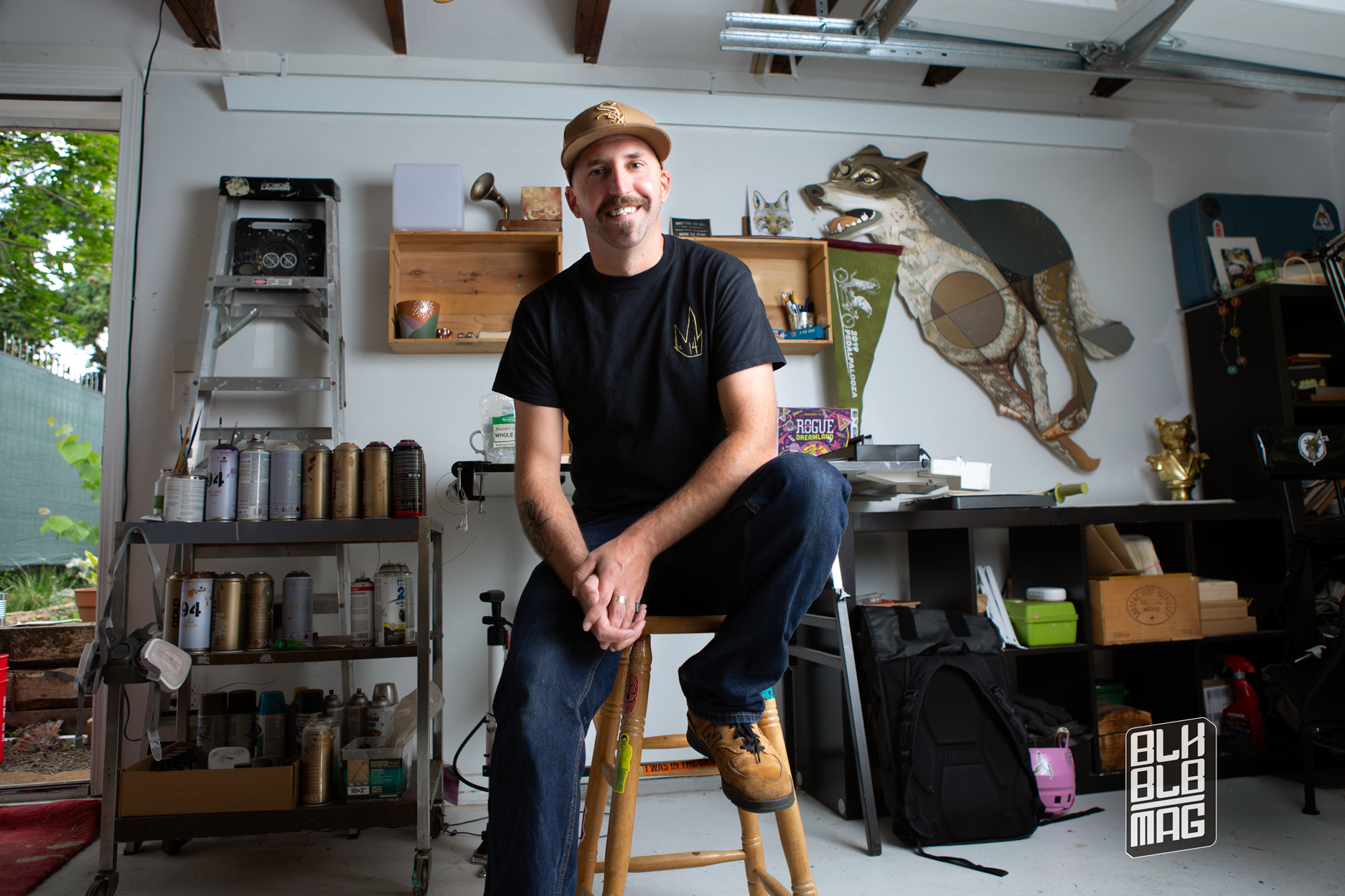 Sam, AKA Wolf X Dog is one of the most thoroughly educated artists we’ve had in the studio yet. His understanding of symbolism and technical skill across mediums has you wondering what he’ll be doing next, and why. He connects best in the environment he surrounds himself in, and because of that, he likes to change things up frequently. Whether if it’s roaming around the city for inspiration, or re-arranging the work in his space; his life, itself, has become its own work of art.